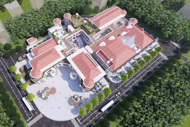 结合项目地中海式建筑风格,项目设计改造以西班牙著名童话故事《云朵工厂》为启发点,采用更现代精致的方式重塑建筑的立面形象,并保留了连廊+中庭+楼梯的空间布局,此外,还融入了云朵、弧拱造型元素,打造鲜明的个性化特色。