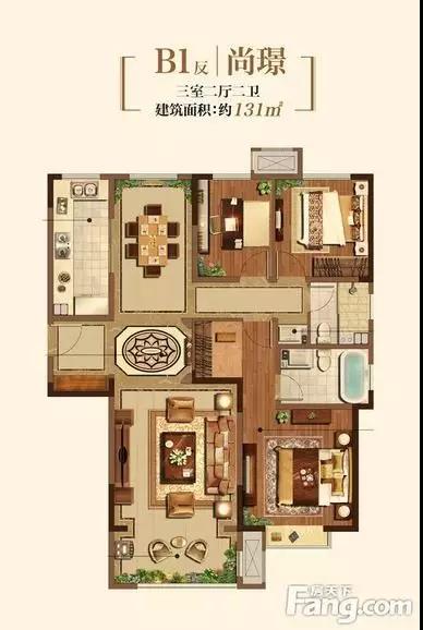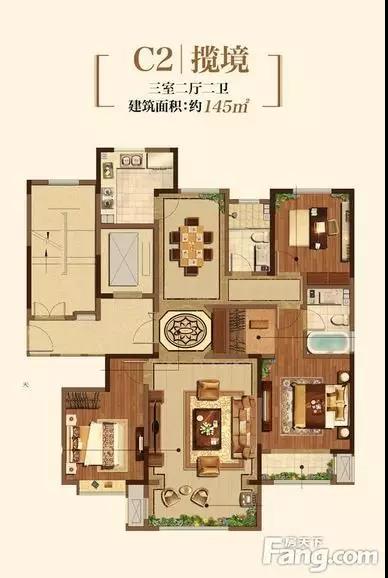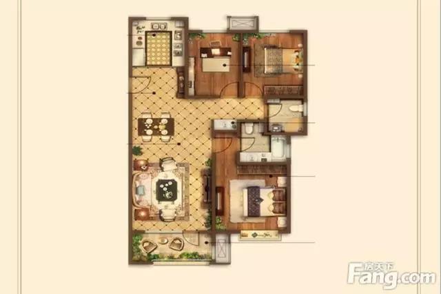 [Analysis of apartment type] As a whole, the apartment type is square and fully bright and transparent, with a spacious activity area, a high residential comfort and good day-lighting, conducive to the ventilation of residential space. The entire space has a reasonable layout, capable of ensuring dynamic-static separation and room ventilation, making use convenient. Various function areas including bedroom, kitchen and toilet have a reasonable size, convenient residential experience and a high overall comfort. The shared area is less than 15%. It is an apartment type with a very low shared area in the current market.