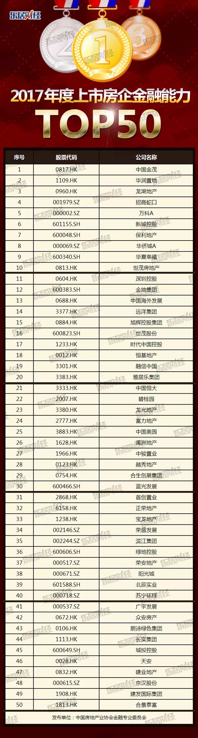 In addition, among the TOP 50 Financial Capacity of Real Estate (2017) announced at this conference, Gemdale ranked 12th on the list due to its sound management, healthy development, outstanding performance and forward-looking development strategy over the past year.